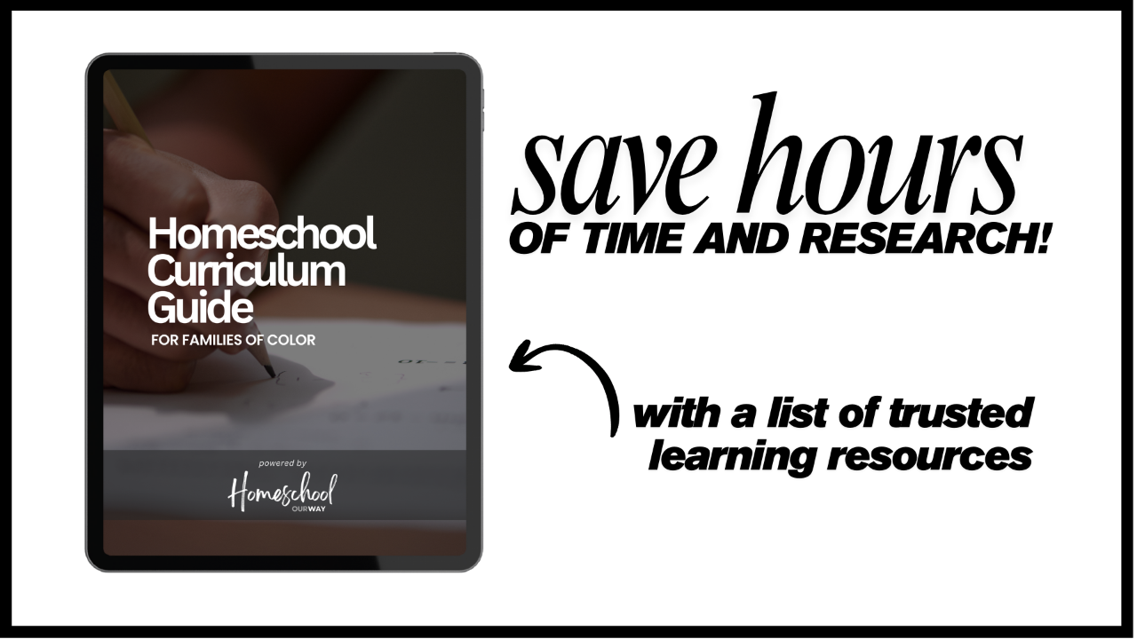The Homeschool Curriculum Guide for Families of Color is your shortcut to finding learning resources that are academically sound and culturally affirming for your family.